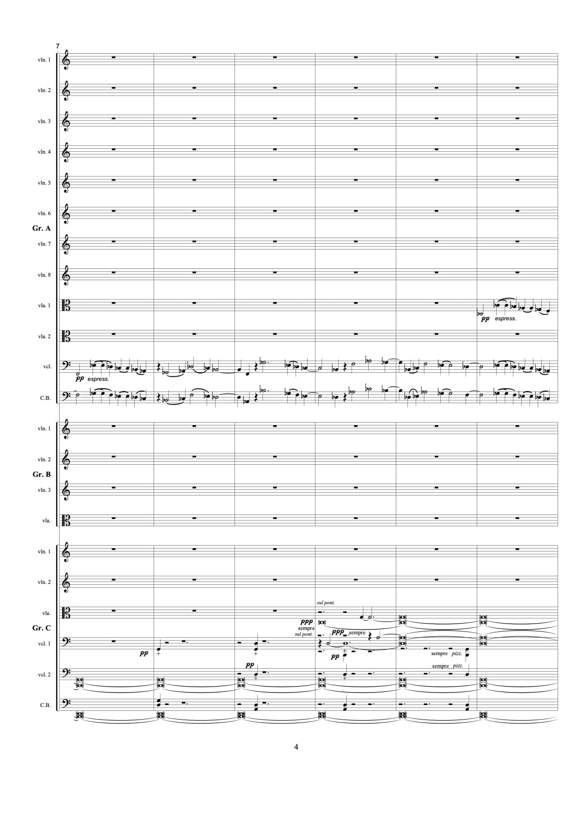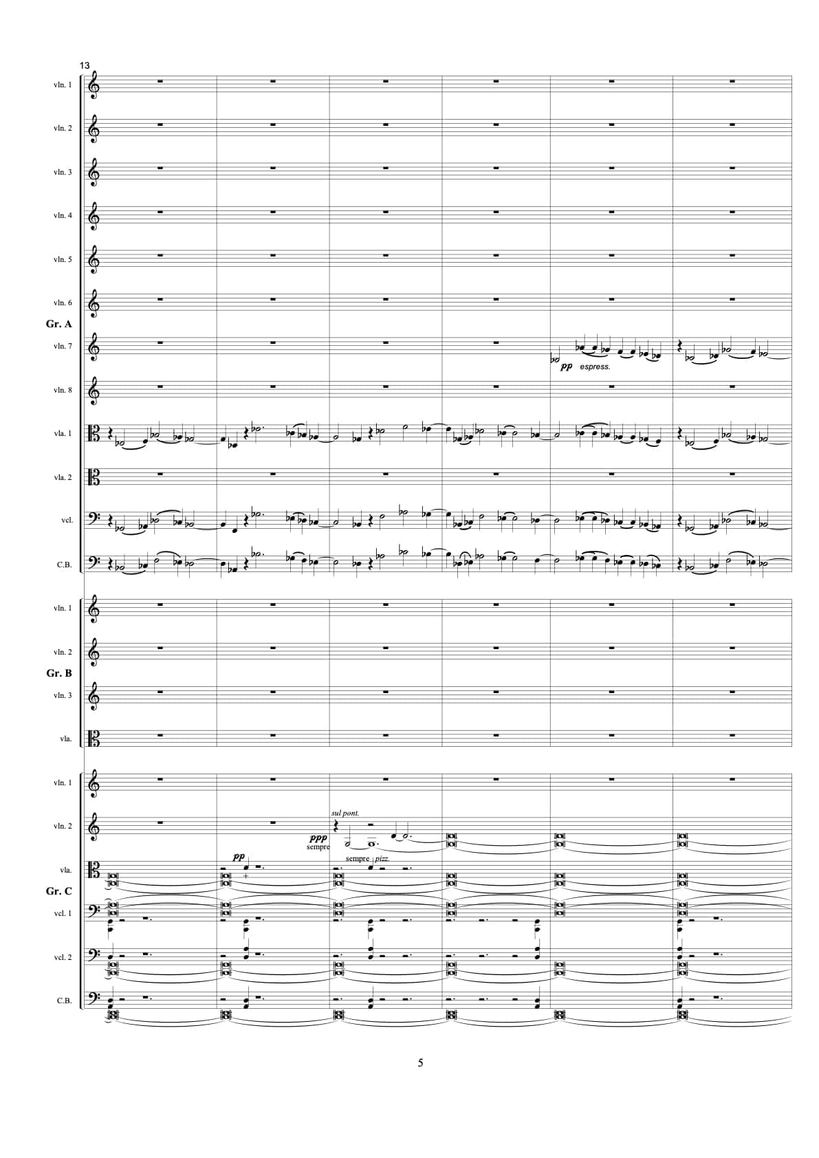 13 violins, 4 violas, 3 cellos, 2 double bass